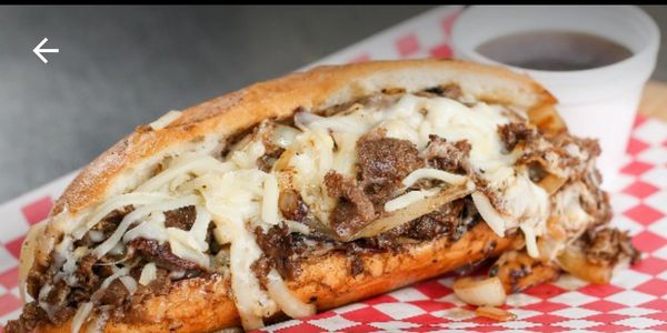 Steak grilled with onions to a caramelized party for your mouth! Topped with smoked provolone and served with yummy hot au jus.